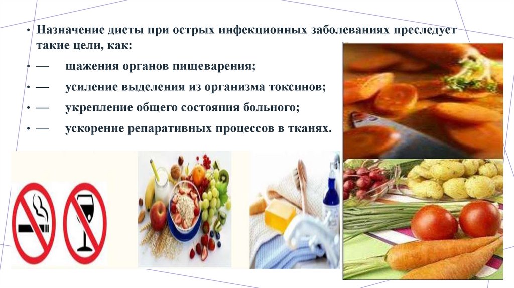 Назначение диеты при острых инфекционных заболеваниях преследует