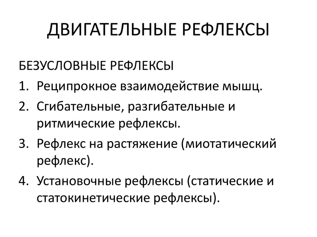 ДВИГАТЕЛЬНЫЕ РЕФЛЕКСЫБЕЗУСЛОВНЫЕ РЕФЛЕКСЫ