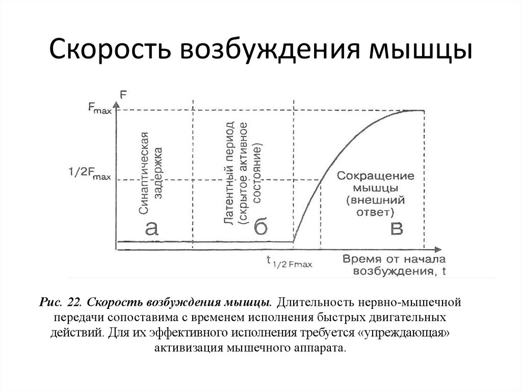 Скорость возбуждения мышцыРис. 22. Скорость возбуждения мышцы. Длительность нервно-мышечной