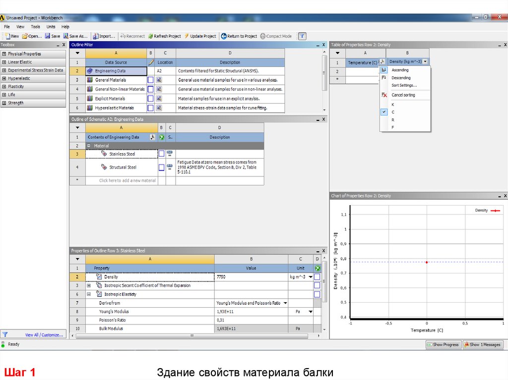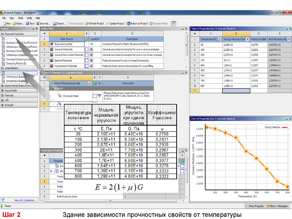 Шаг 2Здание зависимости прочностных свойств от температуры