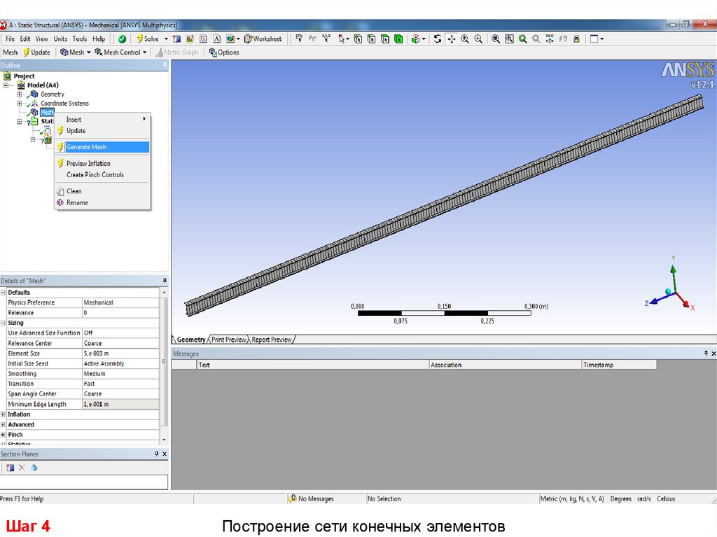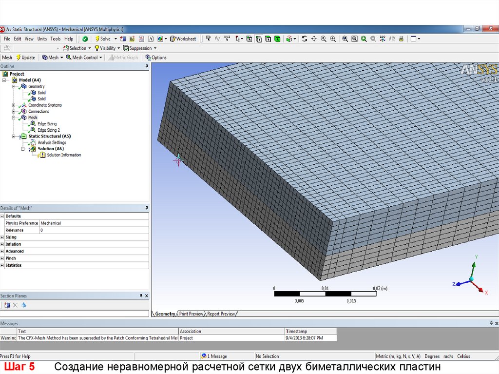 Шаг 5Создание неравномерной расчетной сетки двух биметаллических пластин