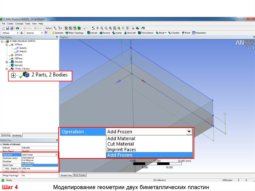 Шаг 4Моделирование геометрии двух биметаллических пластин