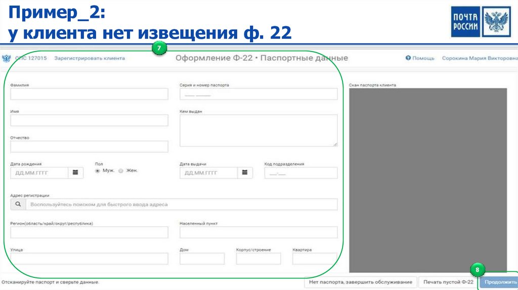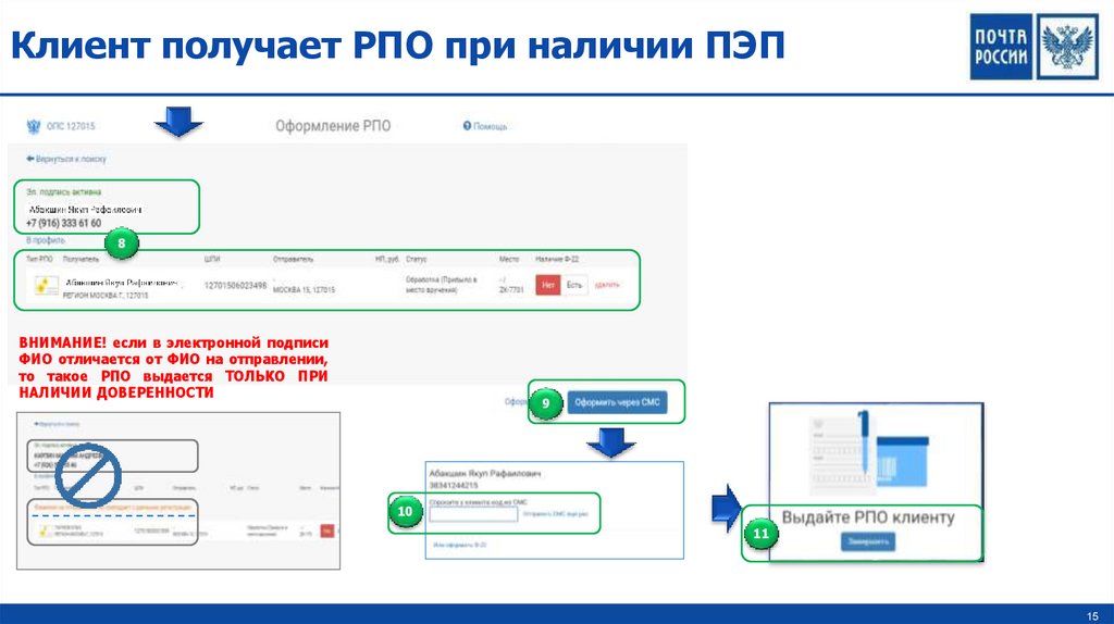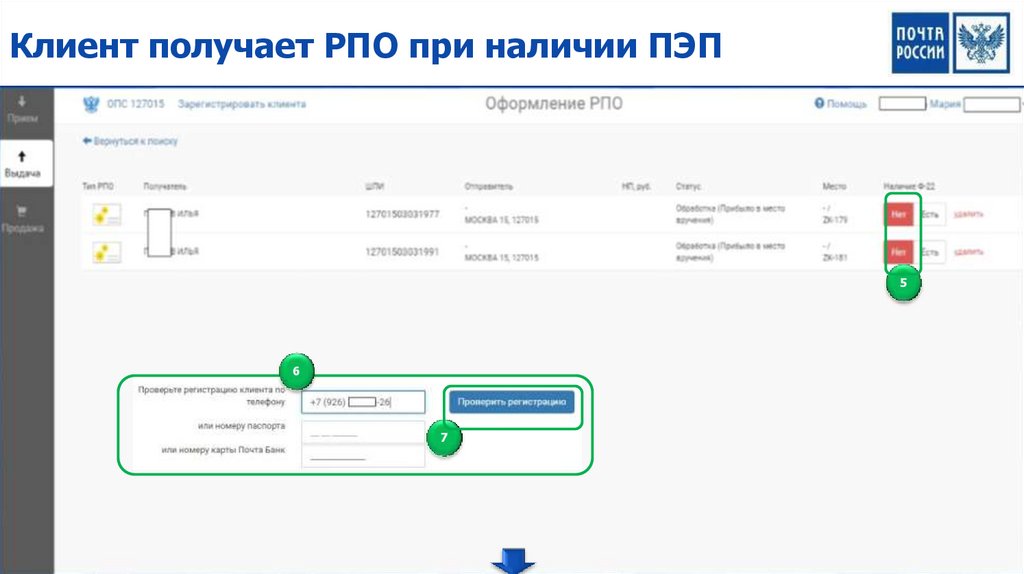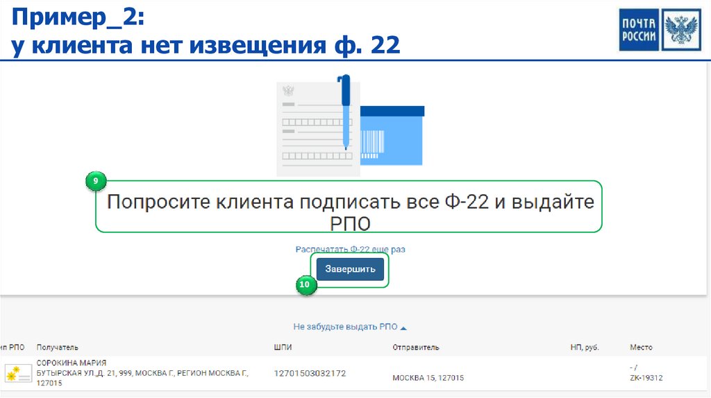 Клиент получает РПО по ф. 22(отказывается от ПЭП)