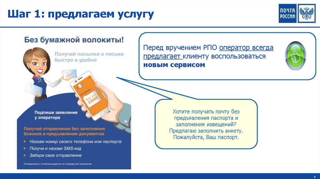 Шаг 1: предлагаем услугуПеред вручением РПО оператор всегда