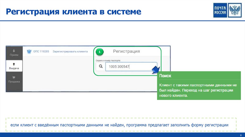 если клиент с введённым паспортными данными не найден, программа предлагает заполнить форму регистрации
