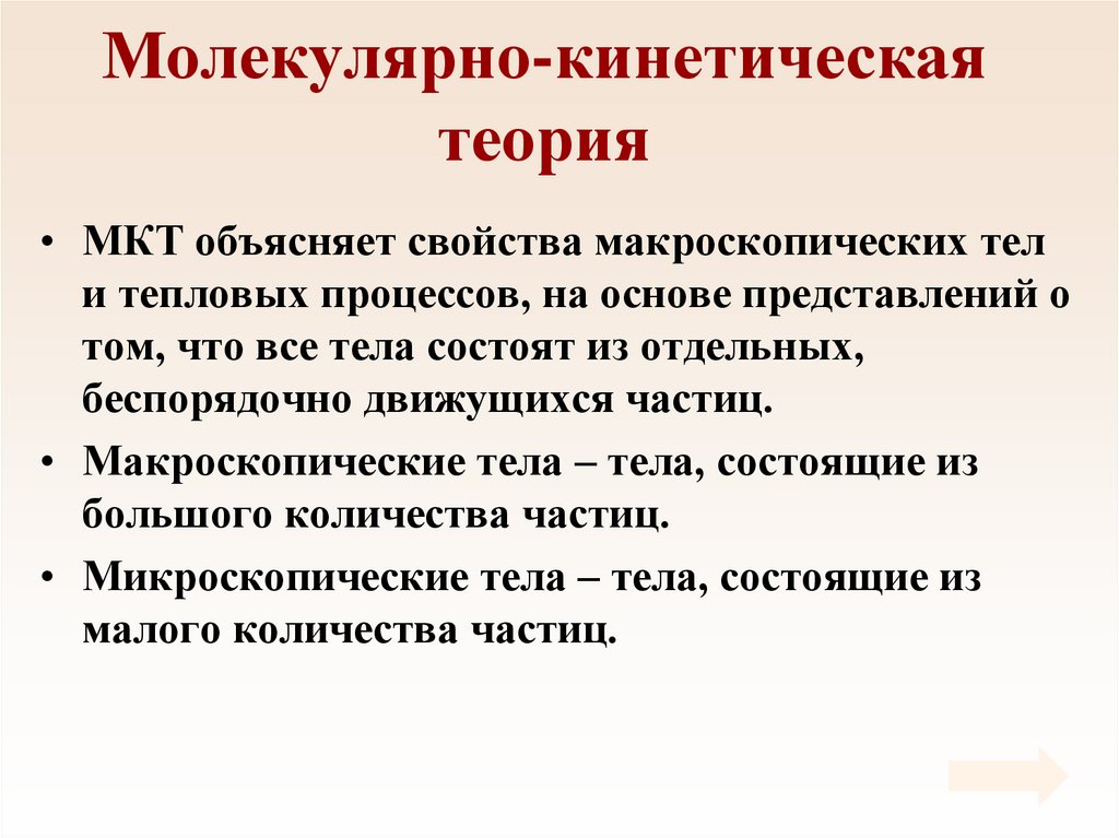 • МКТ объясняет свойства макроскопических тел