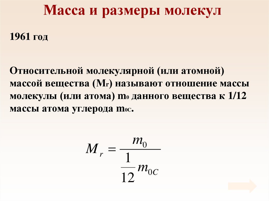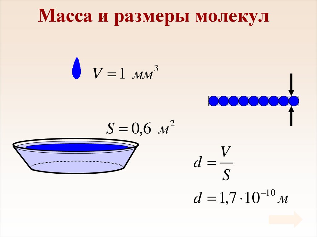 Масса и размеры молекулV 1 мм