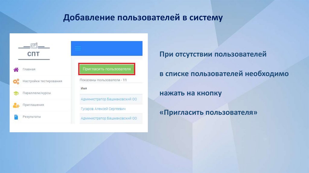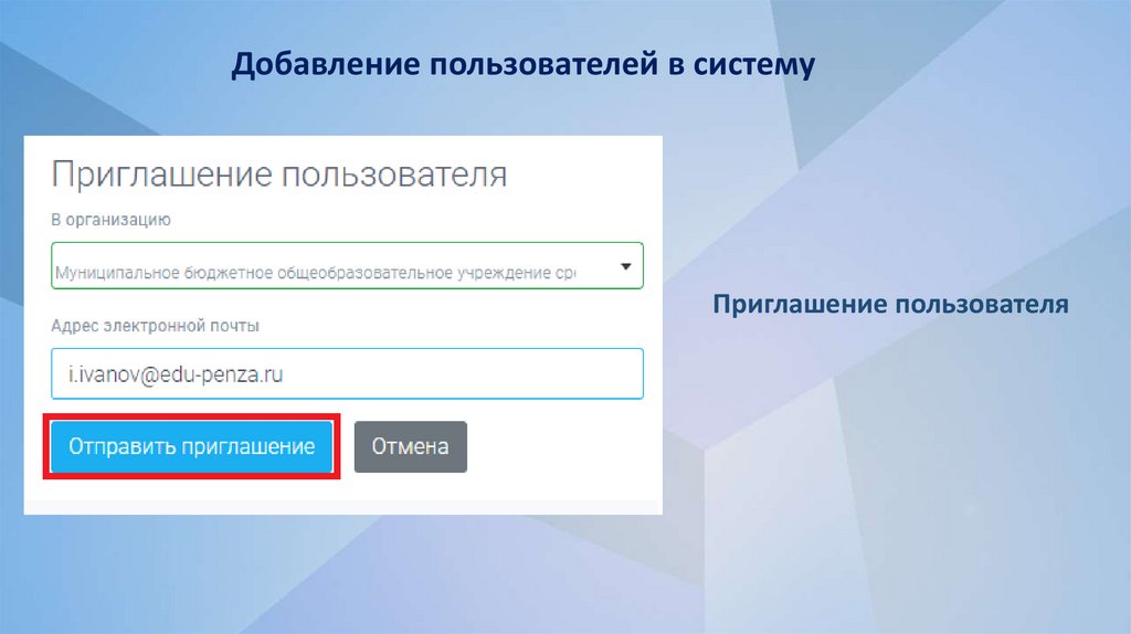 Добавление пользователей в системуПриглашение пользователя