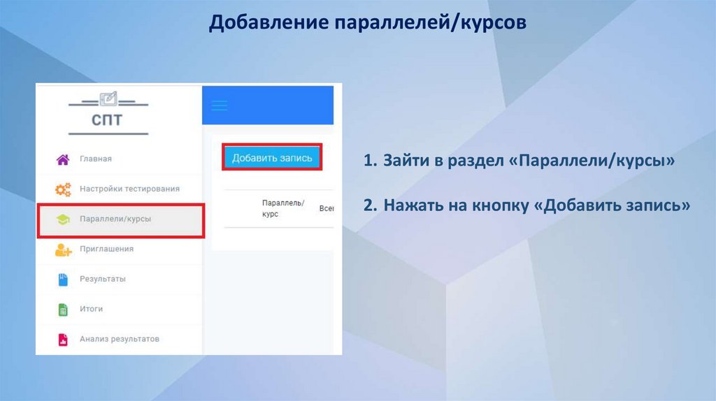 Добавление параллелей/курсов1. Зайти в раздел «Параллели/курсы»
