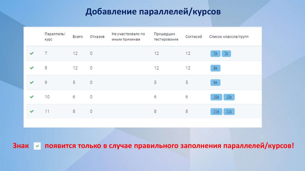 Добавление параллелей/курсовУказываются все классы параллели