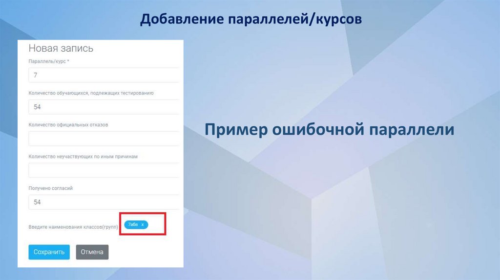Добавление параллелей/курсовПример ошибочной параллели