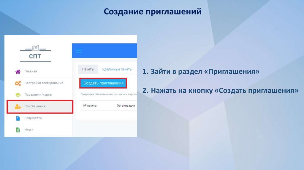 2. Нажать на кнопку «Создать приглашения»