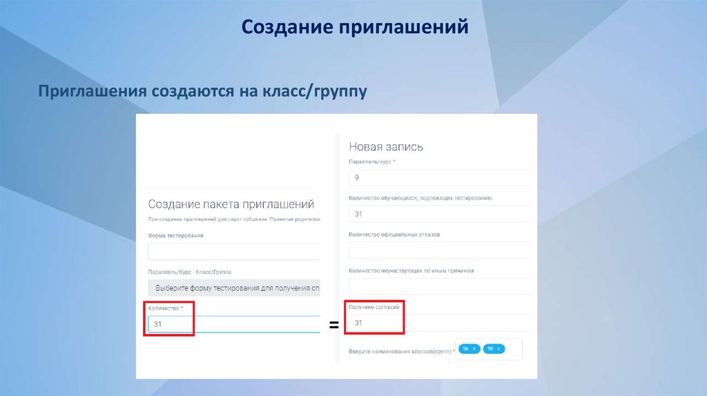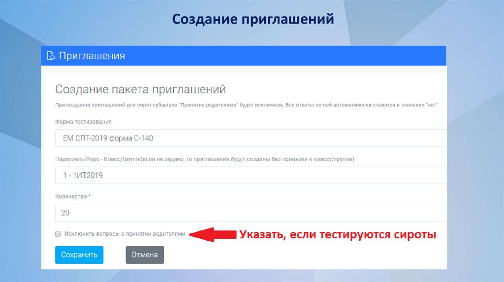 Создание приглашенийПриглашения создаются на класс/группу