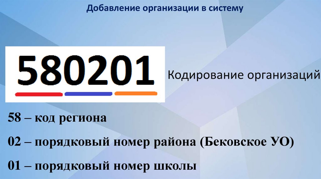 Добавление организации в системуКодирование организаций