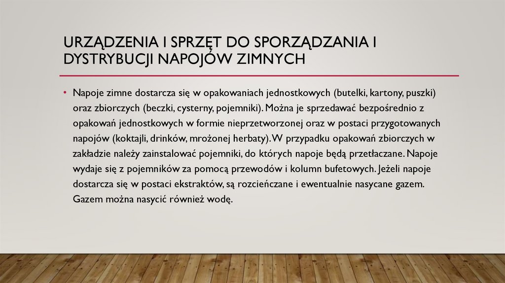 • Napoje zimne dostarcza się w opakowaniach jednostkowych (butelki, kartony, puszki)