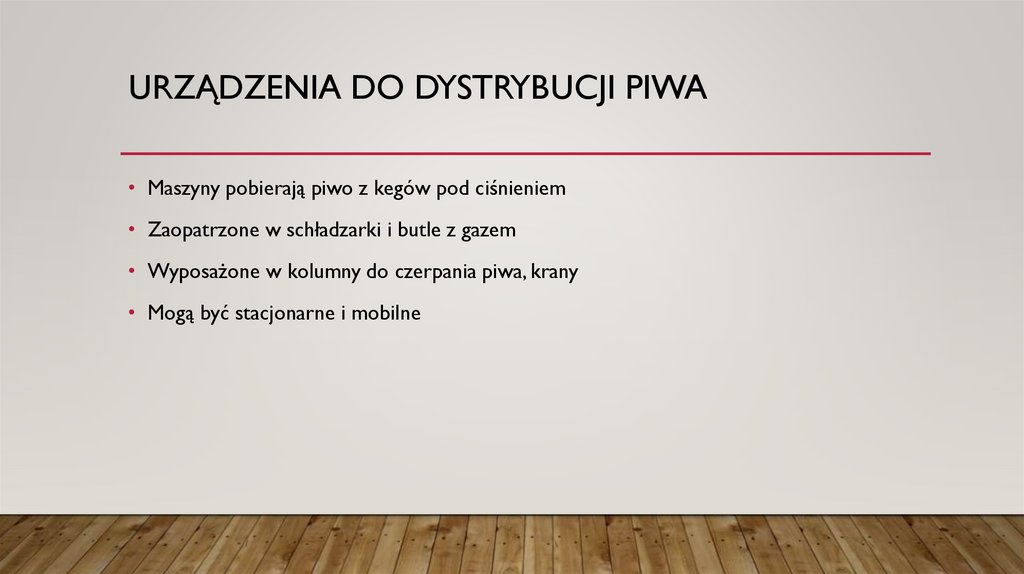 URZĄDZENIA DO DYSTRYBUCJI PIWA• Maszyny pobierają piwo z kegów pod ciśnieniem