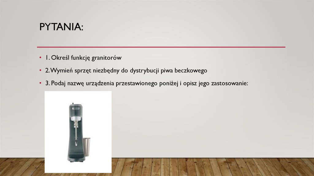 • 2. Wymień sprzęt niezbędny do dystrybucji piwa beczkowego