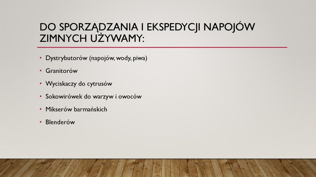 DO SPORZĄDZANIA I EKSPEDYCJI NAPOJÓWZIMNYCH UŻYWAMY: