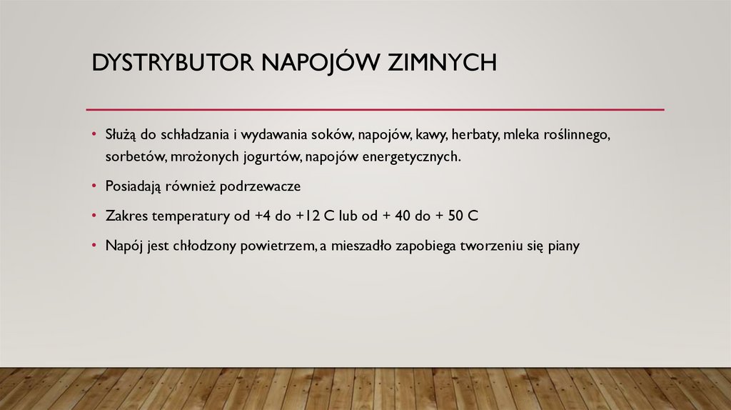 URZĄDZENIA I SPRZĘT DO SPORZĄDZANIA I DYSTRYBUCJI NAPOJÓW ZIMNYCH