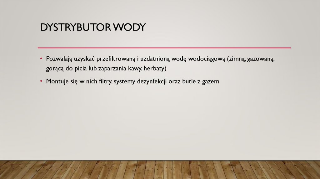 DYSTRYBUTOR WODY• Pozwalają uzyskać przefiltrowaną i uzdatnioną wodę wodociągową (zimną, gazowaną,