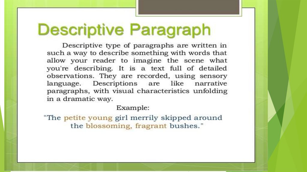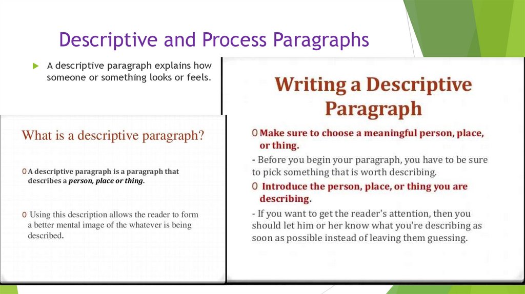 Descriptive and Process ParagraphsA descriptive paragraph explains how