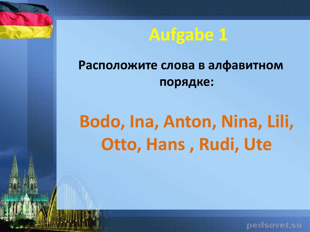 Aufgabe 1Расположите слова в алфавитном