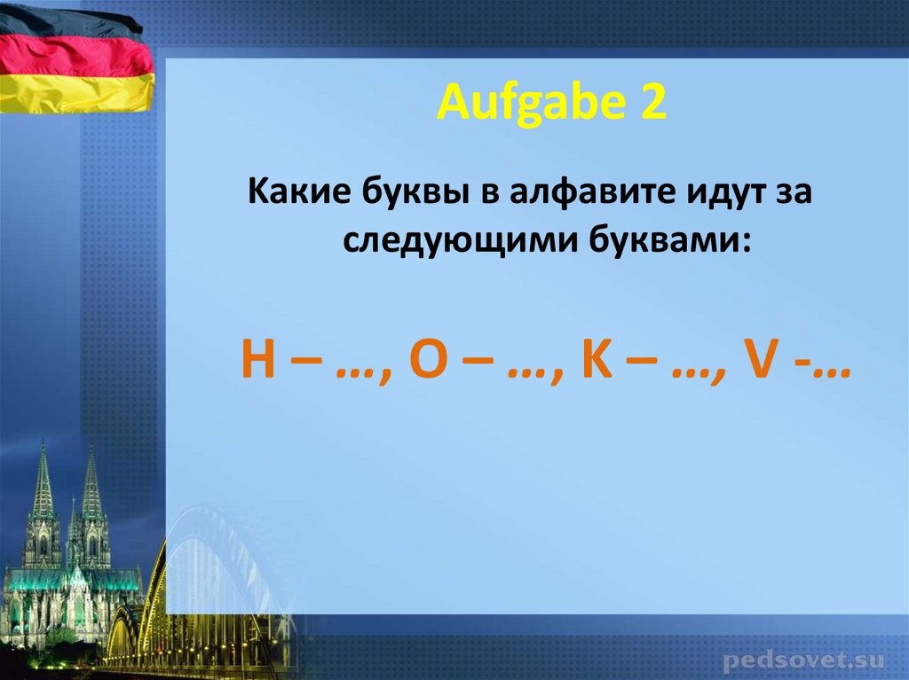Aufgabe 2Kакие буквы в алфавите идут за