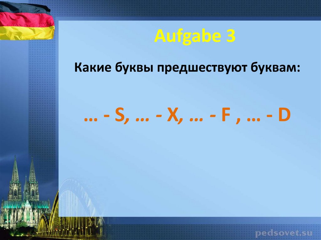 Aufgabe 3Какие буквы предшествуют буквам: