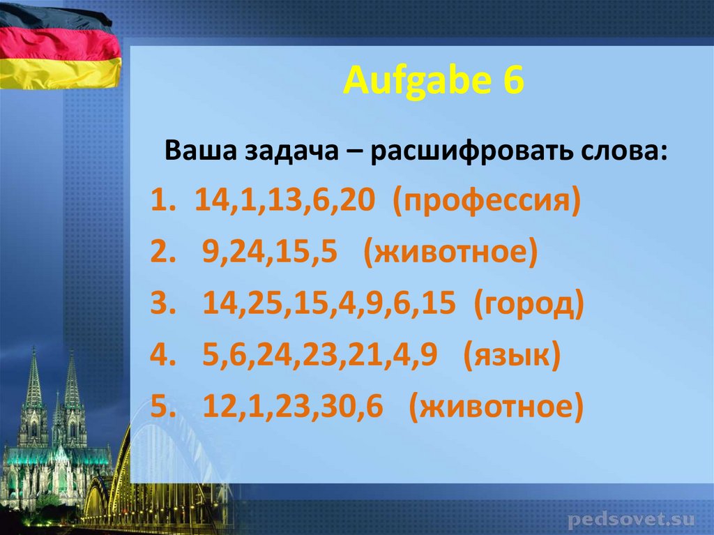 Aufgabe 6Ваша задача – расшифровать слова: