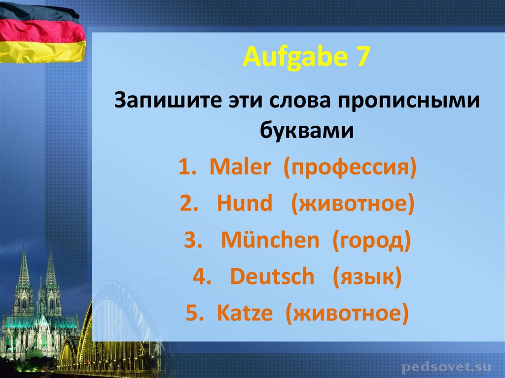 Aufgabe 7Запишите эти слова прописными