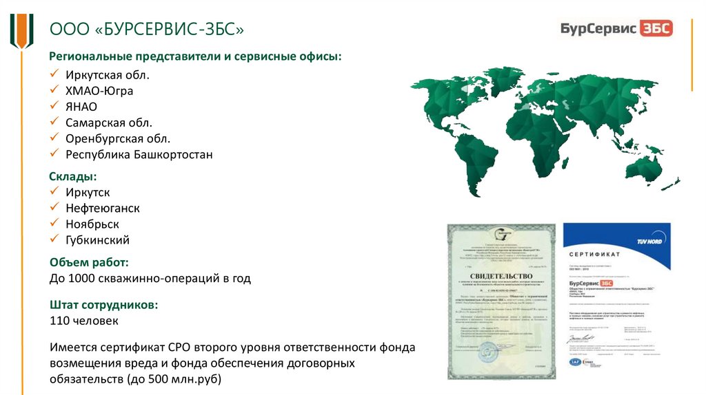ООО «БУРСЕРВИС-ЗБС»Региональные представители и сервисные офисы: