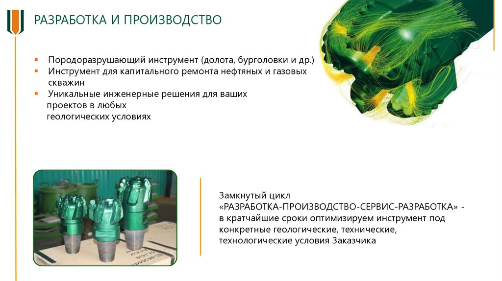 РАЗРАБОТКА И ПРОИЗВОДСТВОПородоразрушающий инструмент (долота, бурголовки и др.)