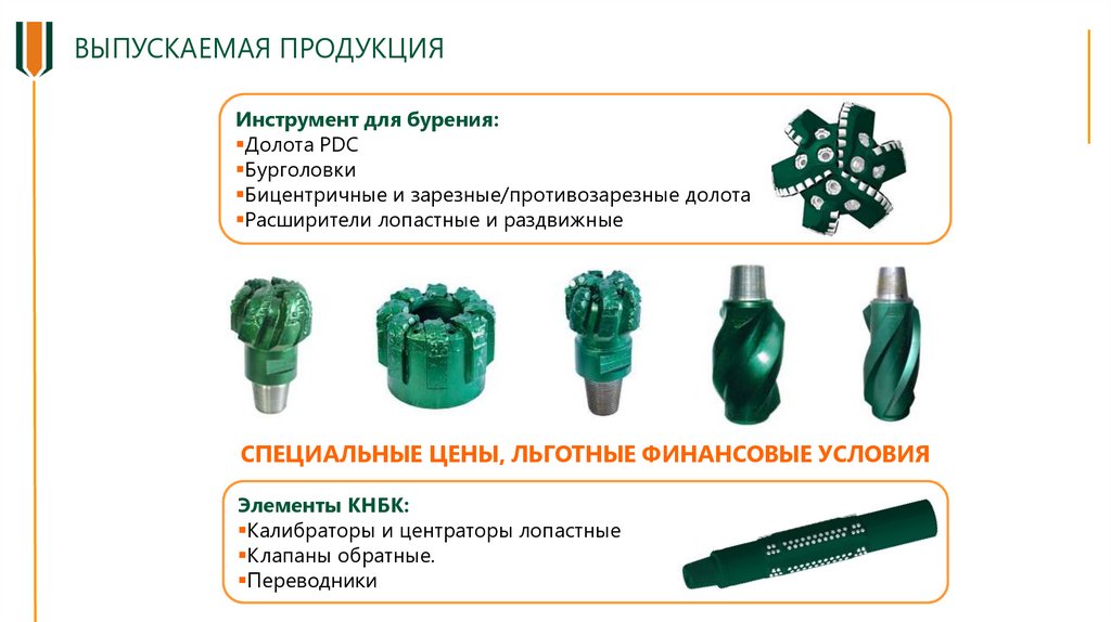 ВЫПУСКАЕМАЯ ПРОДУКЦИЯИнструмент для бурения: