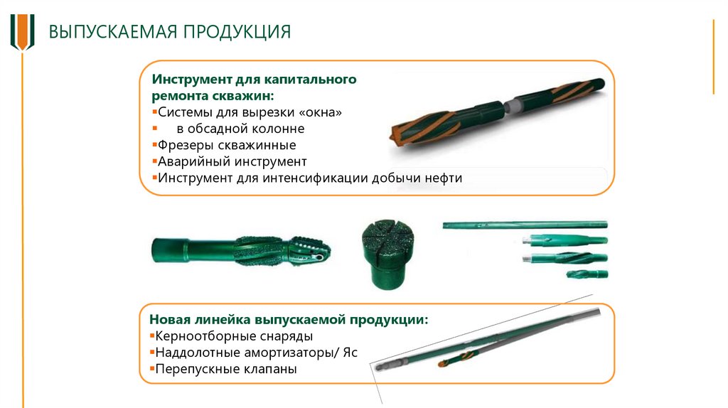 ВЫПУСКАЕМАЯ ПРОДУКЦИЯИнструмент для капитального