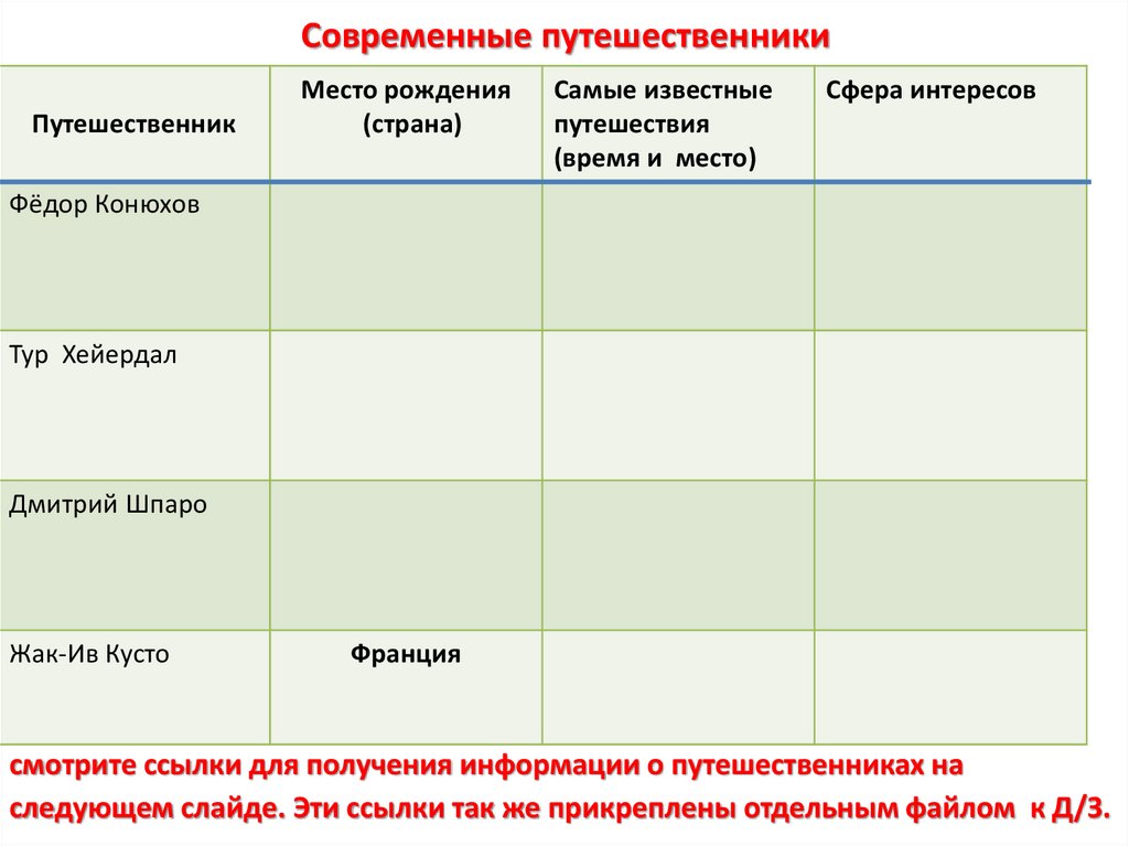 Ссылки, рекомендованные для получения информации о современныхпутешественниках.