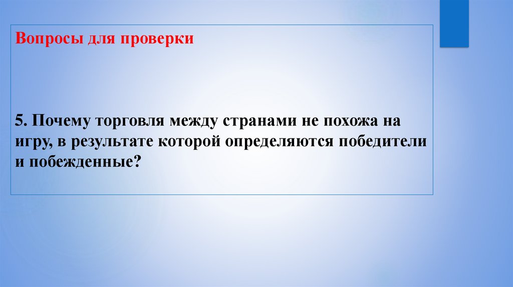 Вопросы для проверки5. Почему торговля между странами не похожа на