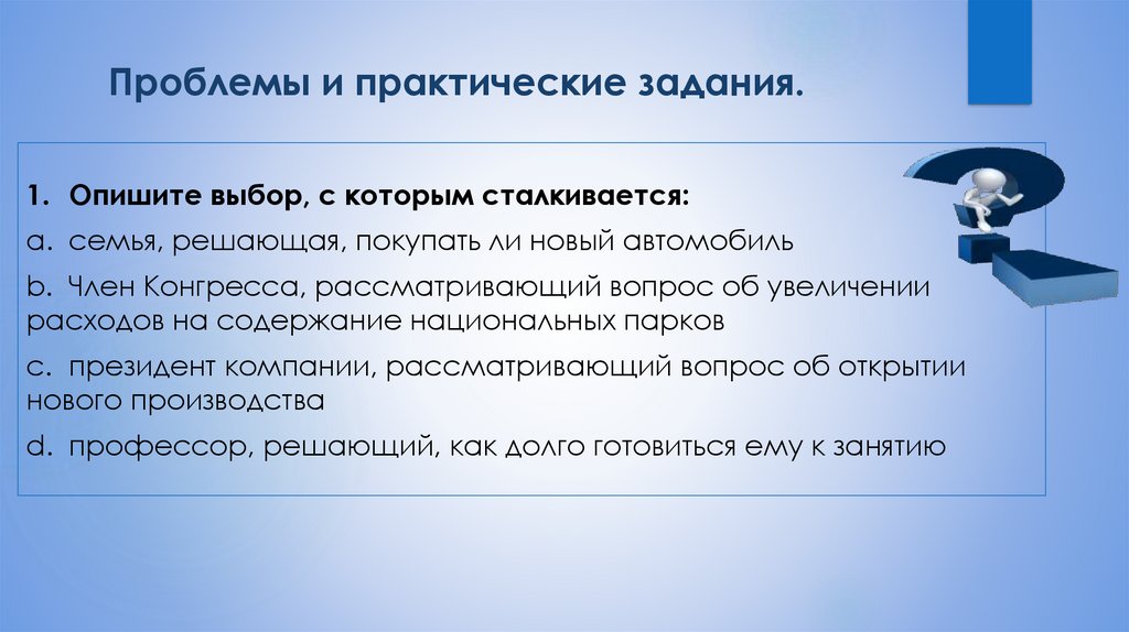 Проблемы и практические задания.1. Опишите выбор, с которым сталкивается: