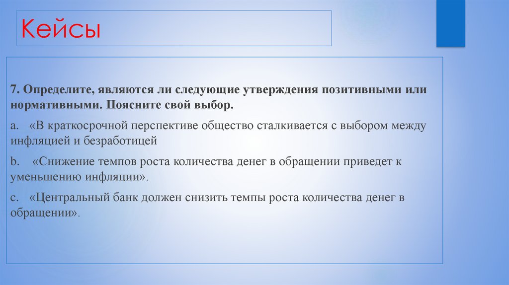 Кейсы7. Определите, являются ли следующие утверждения позитивными или