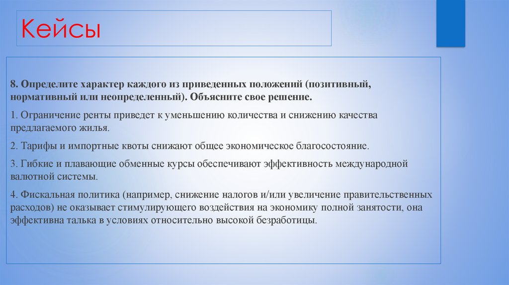 Кейсы8. Определите характер каждого из приведенных положений (позитивный,