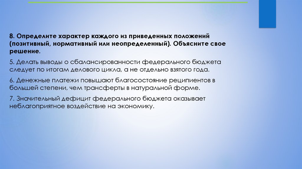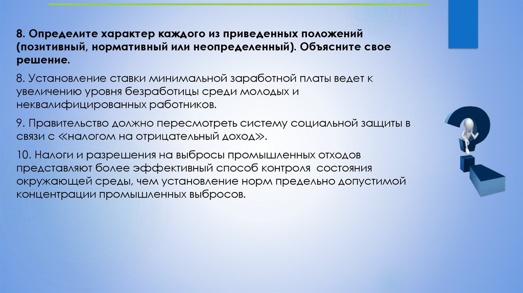 8. Определите характер каждого из приведенных положений(позитивный, нормативный или неопределенный). Объясните свое