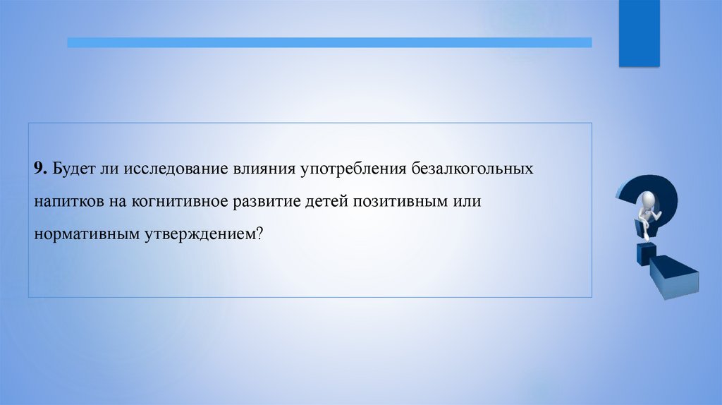 9. Будет ли исследование влияния употребления безалкогольныхнапитков на когнитивное развитие детей позитивным или