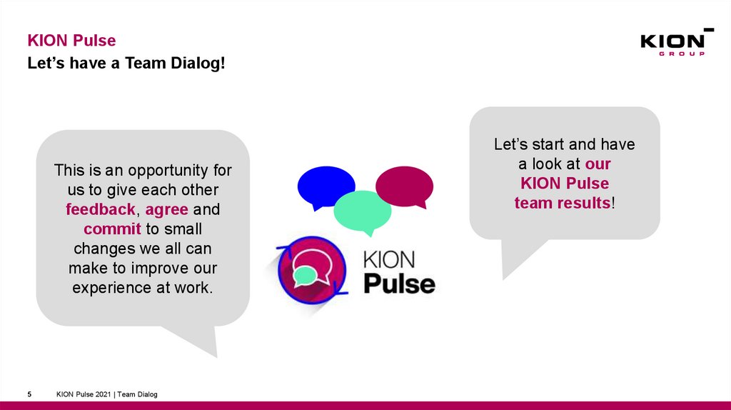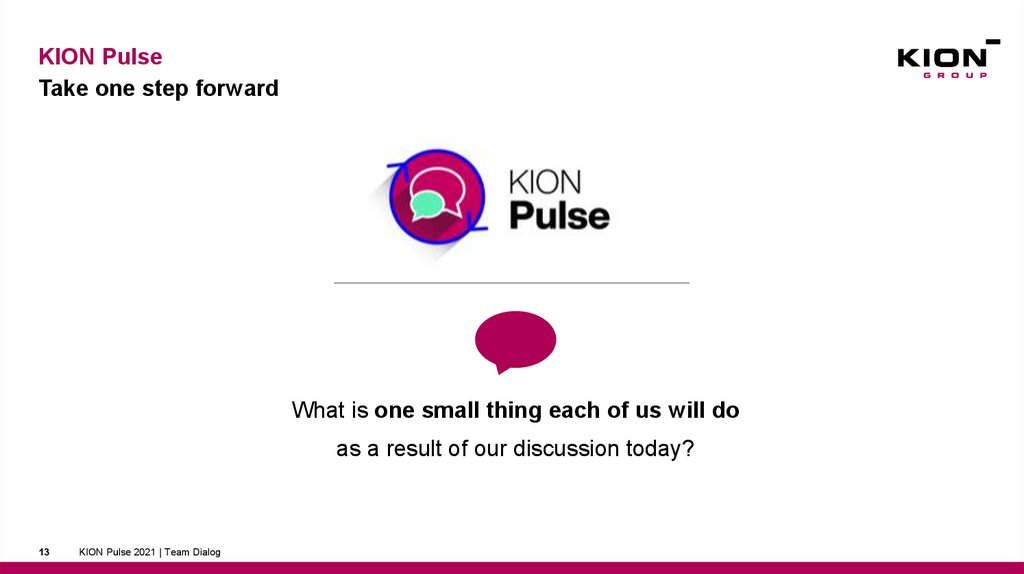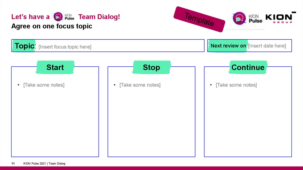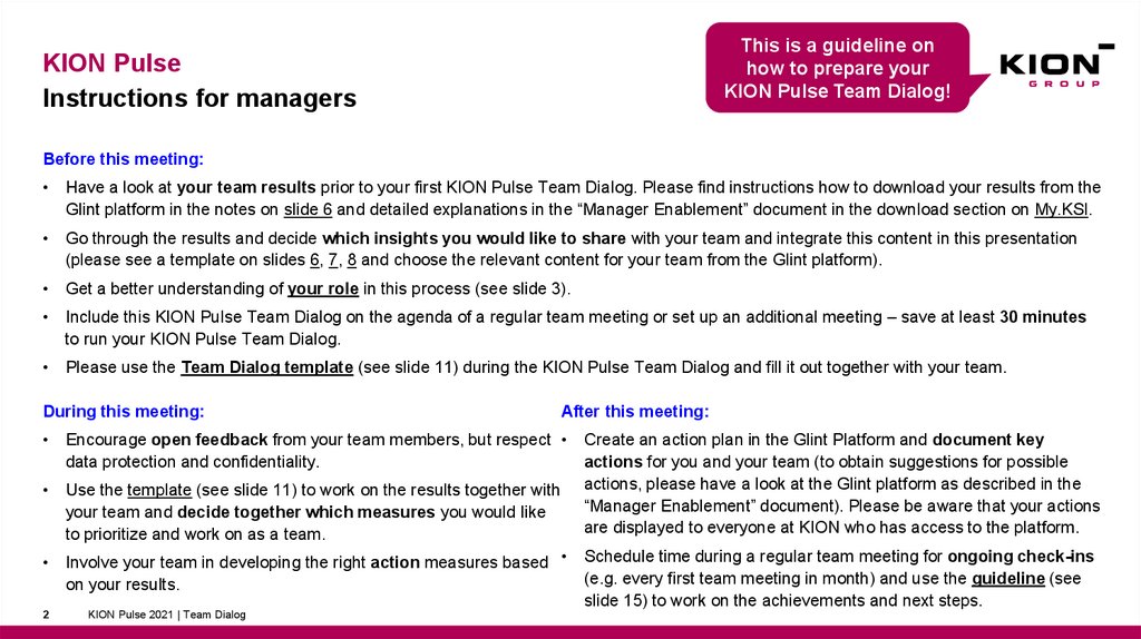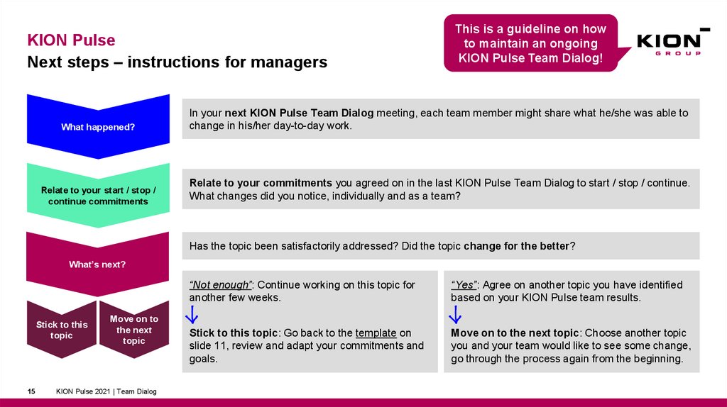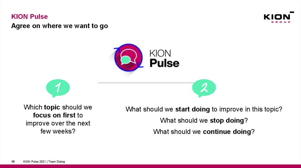 Please use the Team Dialog template (see slide 11) during the KION Pulse Team Dialog and fill it out together with your team.