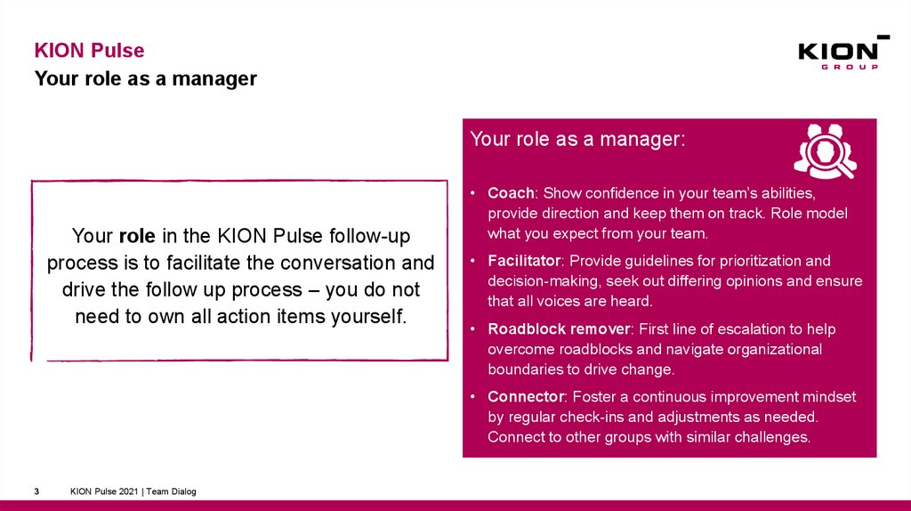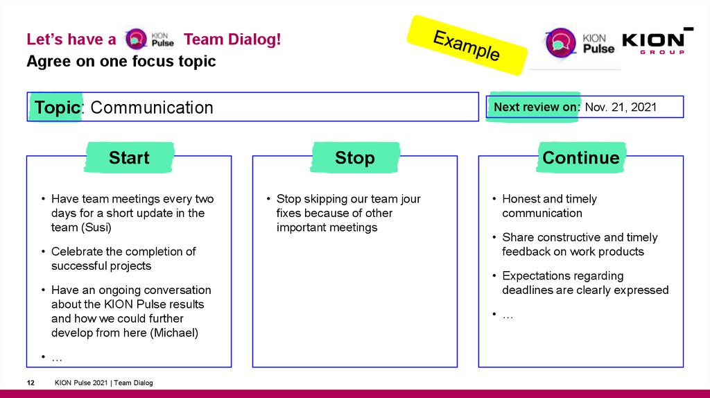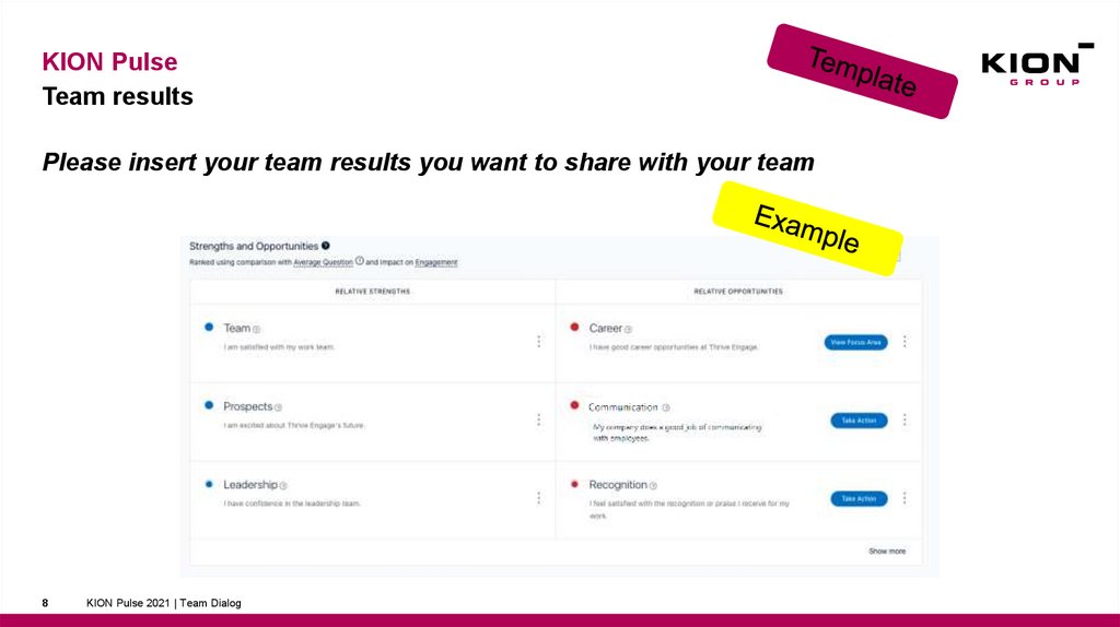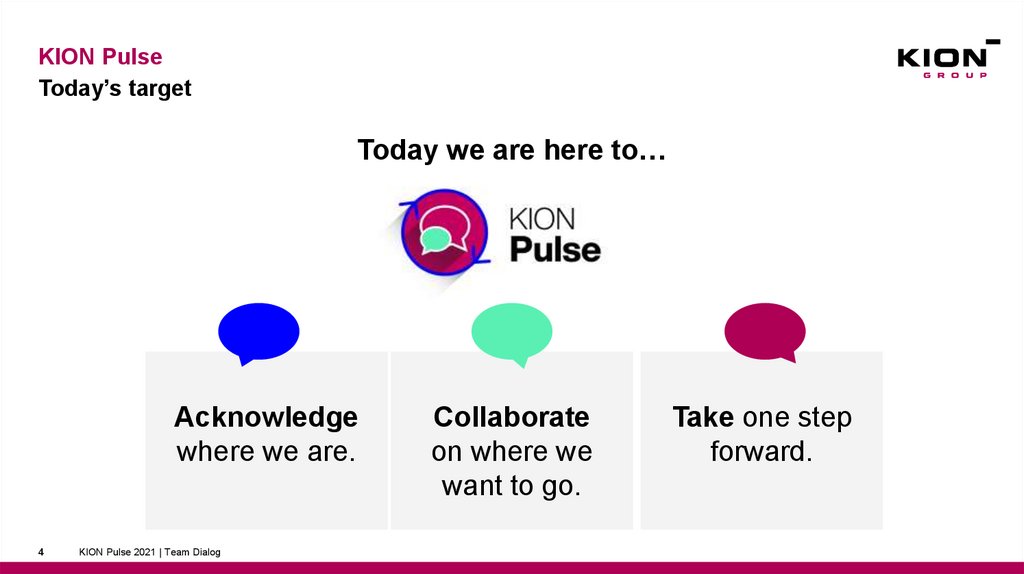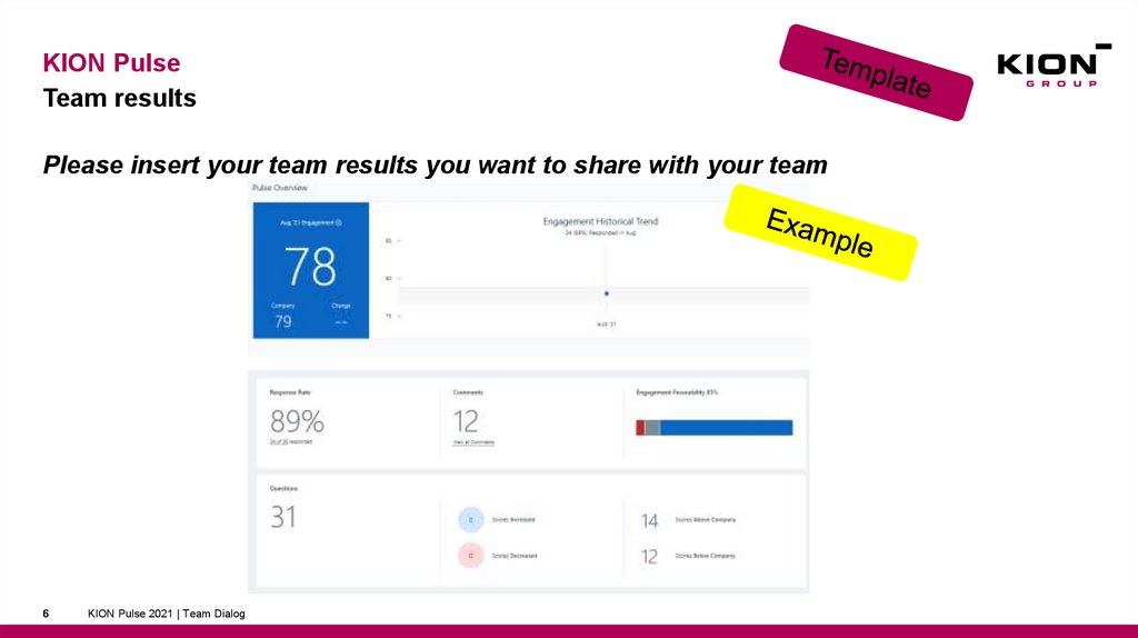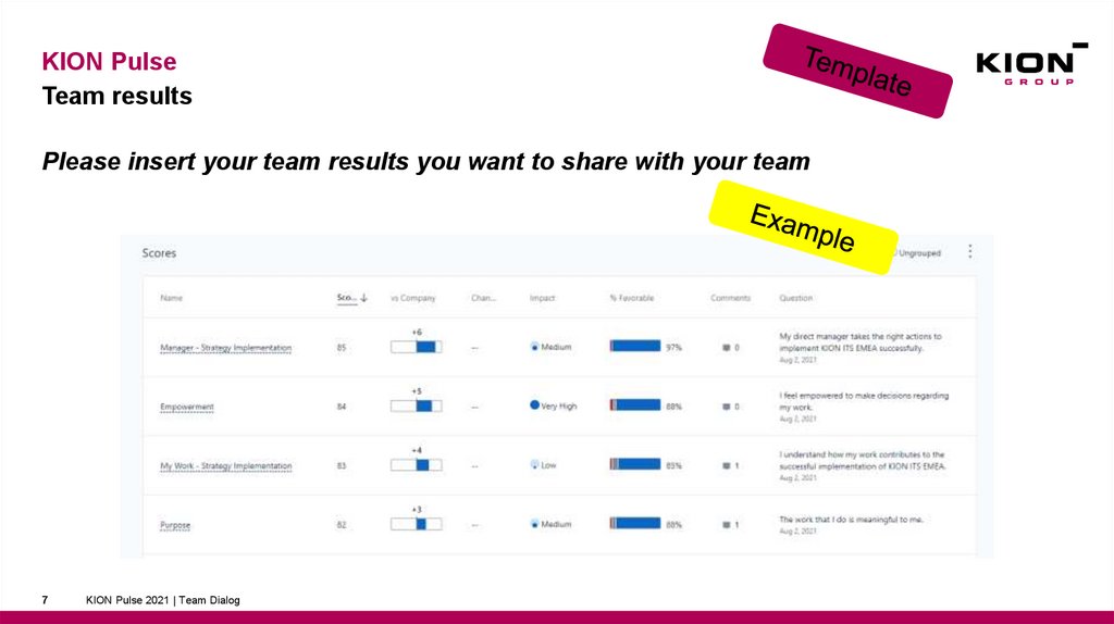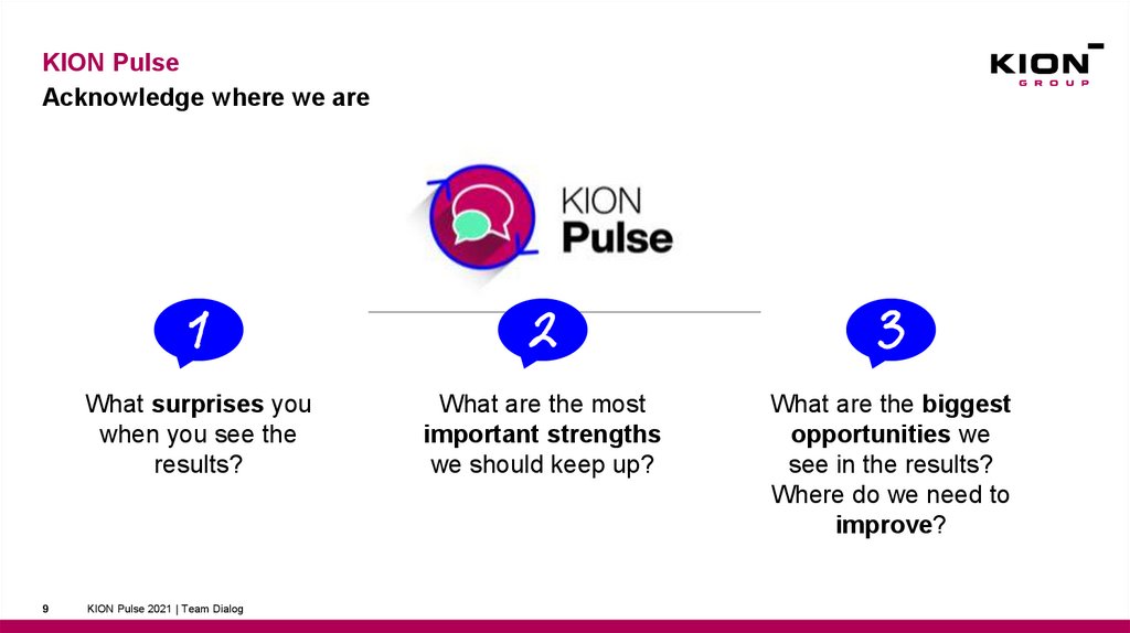 Please use the Team Dialog template (see slide 11) during the KION Pulse Team Dialog and fill it out together with your team.