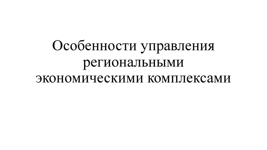 Особенности управления региональными экономическими комплексами