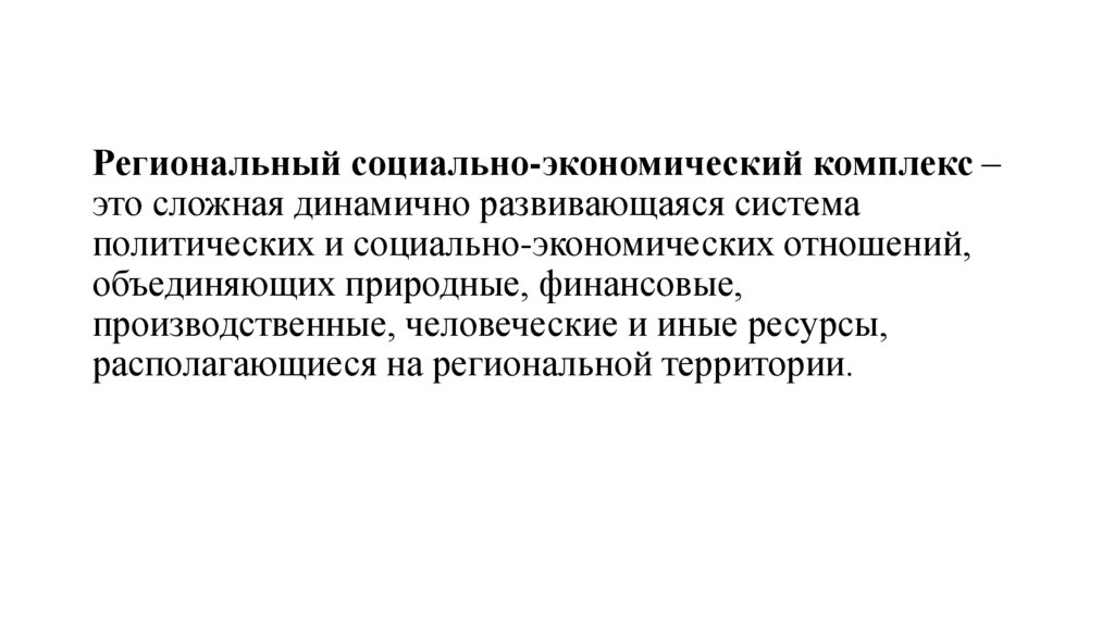 Региональный социально-экономический комплекс –это сложная динамично развивающаяся система
