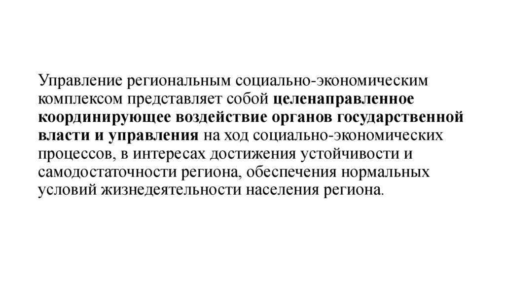 Управление региональным социально-экономическимкомплексом представляет собой целенаправленное