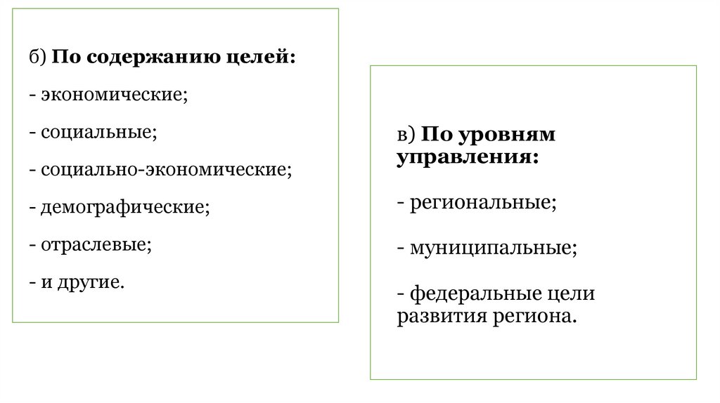 б) По содержанию целей:- экономические;