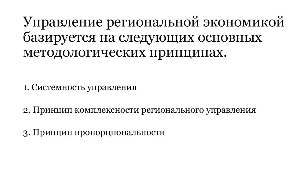 Управление региональной экономикойбазируется на следующих основных