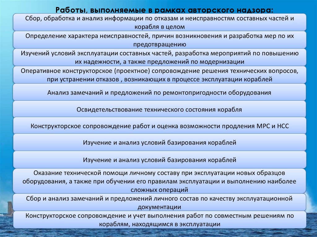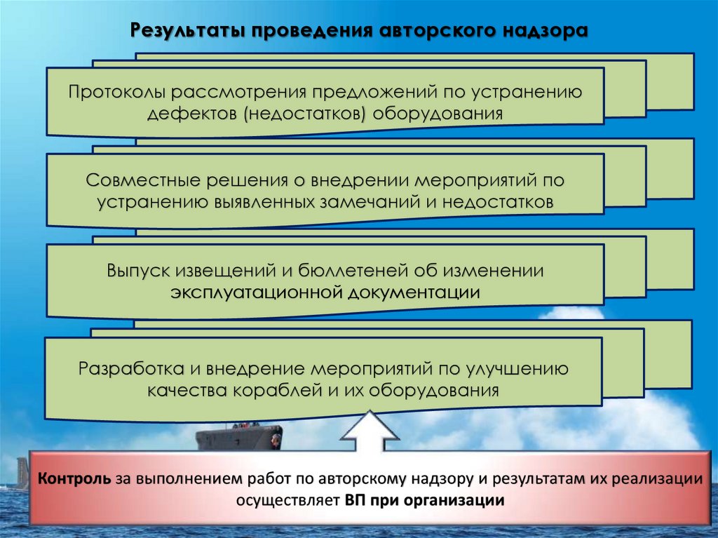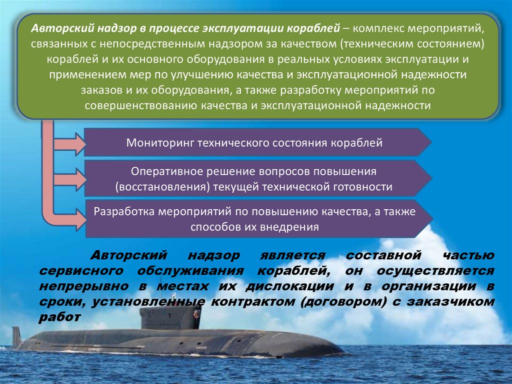 Авторский надзор в процессе эксплуатации кораблей – комплекс мероприятий,связанных с непосредственным надзором за качеством (техническим состоянием)