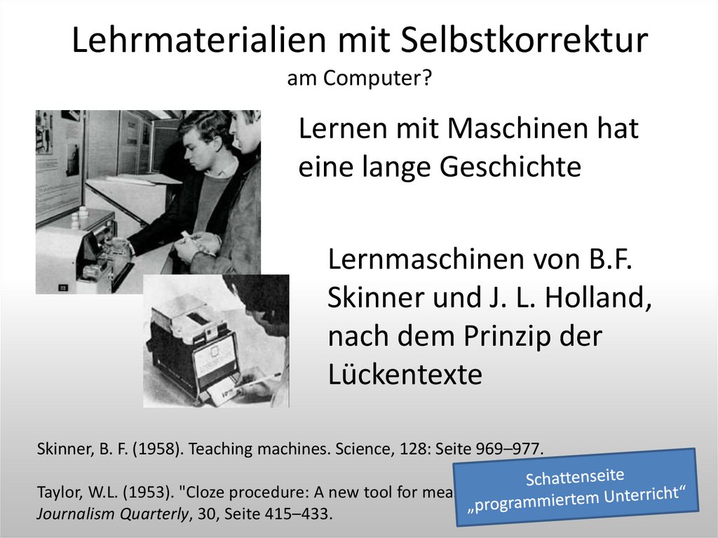 Skinner, B. F. (1958). Teaching machines. Science, 128: Seite 969–977.